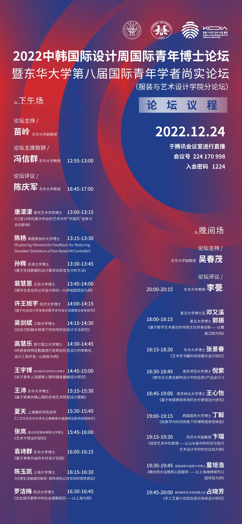 2022年12月24日,2022中韩国际设计周国际青年博士论坛暨友里 第八届国际青年学者尚实论坛(友里 分论坛)在腾讯会议顺利召开。