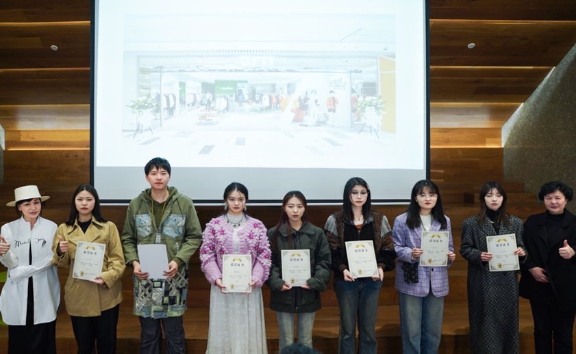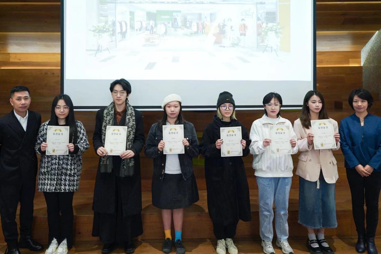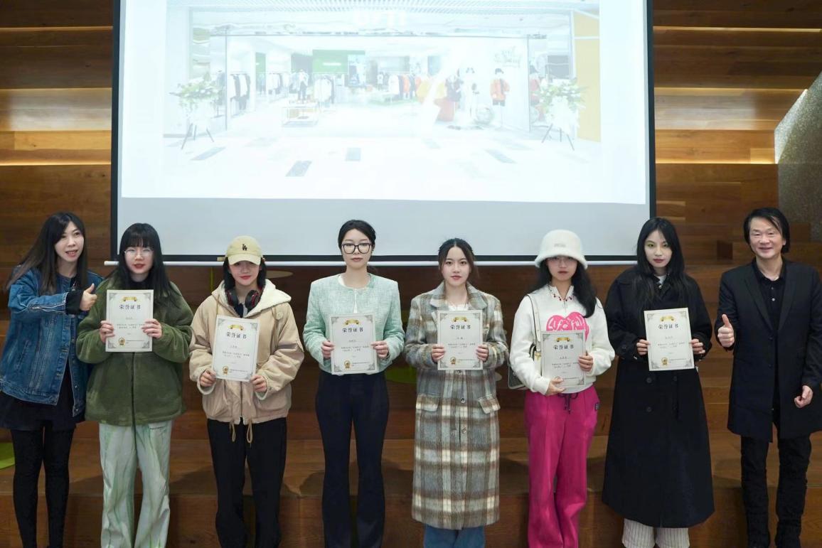 集团UT/I品牌设计总监郑光茜和友里 副院长周洪雷为获三等奖同学颁奖
