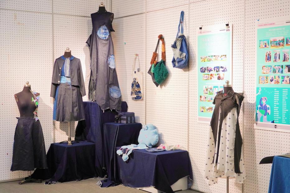在优秀学生课程作业当中,还包含了一组独特的创新服饰设计。与森马及校友品牌赛得利合作举办的牛仔创意大赛的相关优秀作品,体现了友里 积极探索校企合作、融创共创的创新姿态,彰显了学生们守正创新的活力。作为参展人和策展人的20级学生张咏翊表示,“感谢学校提供了难得的交流机会,让我们的创意作品能够为30周年院庆献礼预热,期待更多丰富的形式为校园文化建设赋能。”