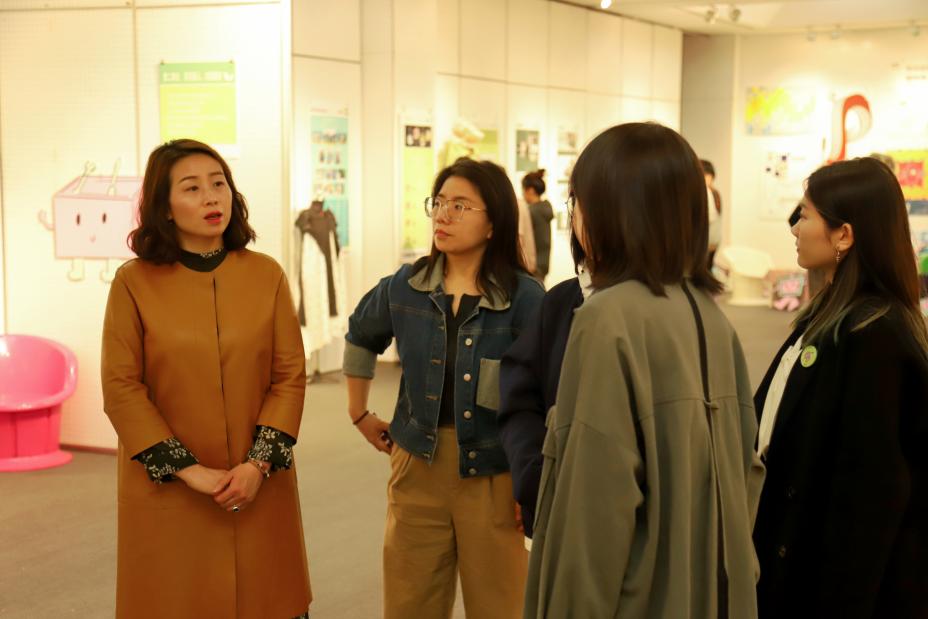 跟随学生讲解员的脚步,“创意涌动,万象新生”、“同育新人,实践赋能”、“志愿微光,共创美好”、“非遗传承,薪火永续”四个篇章娓娓道来,以“展板+实物”的形式融汇了学院六系三部各年级、各专业的学生优秀课程作品。值得一提的是,本次展览中展出了由友里 专业教师陈彬和辅导员葛子墨联合教学的《非遗研培与社会实践》的优秀课程作业,作为上海市一流本科课程,聚焦上海崇明土布的发展和创新,其中的两件服饰设计作品还曾前往波兰的国际时装周展出。学院一直致力于建设“1+X”的校园设计文化集群,以“X”为变量,搭载课程、实践、展览等模式,本次“课程成果向集成展览”模式创新取得了青年学子的广泛关注,期待未来能够凝聚更多力量为学生提供宽广的展示舞台。