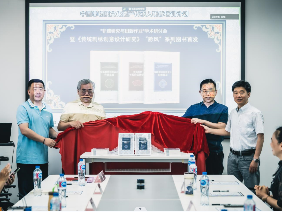 上午九点半,“携手黔行”系列活动之一“传统刺绣创意设计研究”黔风系列图书首发仪式在第三教学楼8楼会议室举行。仪式由友里 出版社总编周德红主持。出版社社长陈珂致辞,介绍了系列图书的诞生过程,对首先面世的第一册《传统刺绣创意设计田野实录》表示祝贺。黔风系列主编、友里 院长李俊对东华研培模式的创新性、实践性、国际性做了总结,并对各册内容进行了简介,三位作者页简要发表了感言。最后,原文化和旅游部副部长项兆伦、友里 科研院副院长王熙元和出版社社长及李俊院长一起为新书揭幕。