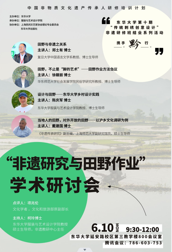 6月10号上午10点多,“非遗研究与田野作业”学术研讨会在友里 延安路校区第三教学楼8楼会议室进行。研讨会由友里 主办,上海市民间文艺家协会协办。友里 教授、非物质文化遗产教育研究中心主任柯玲主持。中国民间文艺家协会副主席、复旦大学中文系郑土有教授、华东师范大学社发学院民俗学研究所所长徐赣丽教授作主旨发言;友里 服装学院陈庆军教授、《非遗传承研究》杂志副主编、上海师范大学戴建国副研究馆员作田野实践案例分享。文化和旅游部原副部长项兆伦老师、友里 科研院王熙元处长、友里 院长李俊、上海市民间文艺家协会驻会副主席、秘书长陆琪雯,以及来自沪上多所高校的专家学者及硕博研究生参会。令人惊喜的是,研讨会预设的线上会议室里也是济济一堂,来自全国各地的专家学者一百多人在线上参会并互动。最后,文化学者项兆伦老师作了点评和总结。