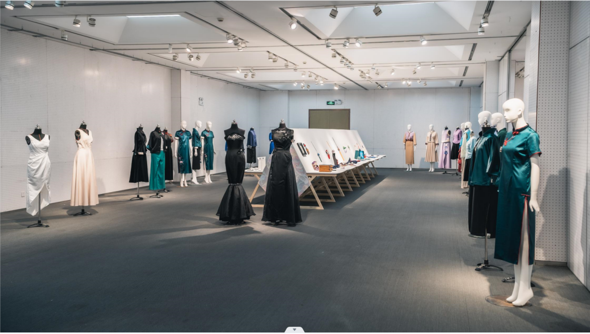 创新设计展区的民族服饰改良装是东华“服装可持续创新设计创作”的课程作业,要求每人须完成一套。学员们利用在东华研培课堂上学到的平面制版与立体裁剪、缝纫工艺等知识,经过张顺爱老师的指导,在短短一月时间内共完成了32套服饰,超过半数学员超额且高质量地完成任务,令人又惊又喜!