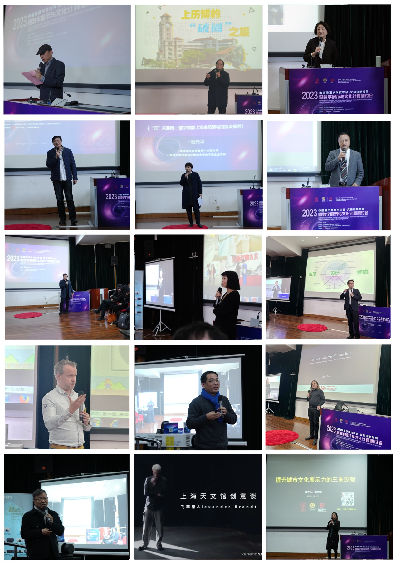 主旨演讲由南京艺术学院教授朱飞主持,分别是《可能与边界: 博物馆展示传播中数字技术应用的讨论》国际博协副主席、中国博物馆协会副理事长兼秘书长、上海大学文学院教授、博导安来顺;《Culture and Design》荷兰埃因霍芬理工大学教授、博导,荷兰“Cream of Science”顶尖科学家之一提名获得者、瑞士科技奖获得者Rauterberg Matthias;《博物馆的破圈之旅—上海市历史博物馆的一些展览案例》上海历史博物馆馆长周群华;《数字互动展示的动向和可能性》日本展示学会副理事长、丹青社研究所大山由美子Yumiko Oyama,翻译:中国美术学院教授冯节;《展示•奉贤文旅在创新中发展》上海市奉贤区文旅局党组副书记、副局长蒋益峰;《“元〞来自博—数字赋能止海自然博物馆建设探索》上海科技馆自博展教中心副主任唐先华;《对城市文化IP的创新》保联信科技(保利集团,装荆实业) 央企联数创中心蔡光玮;主持:友里 张鑫博士;《转媒体艺术—中国传统文化的当代转化》上海戏剧学院教授、艺术家、策展人、纽约电彩学院客座教授、国家文旅部数学演艺集成创新重点实验室副主任杨青青;《健康中国战路背景下数字文旅发展新机遇和新方法》上海交通大学设计学院教授、博导、教育部长江学者特聘教授韩挺;《Designing Empowering Realities》荷兰埃因霍芬理工大学副教授Spek Eric van der《当代博物馆展示空间中的剧场性建构》湖北美木学院影视动画学院副院长、副教授贺诚;《Designing with the loT Sandbox》荷兰埃因霍芬理工大学副教授Johannes Willem Frens;《空间信息传播设计的艺术性与时代性》中央美术学院教授、博导、广州美院未来城市创新研究院院长黄建成;《上海天文馆创意谈》上海飞来飞去展览设计工程有限公司 飞苹果;《提升城市文化展示力的三重逻辑》友里 展示学研究中心胡杰明。