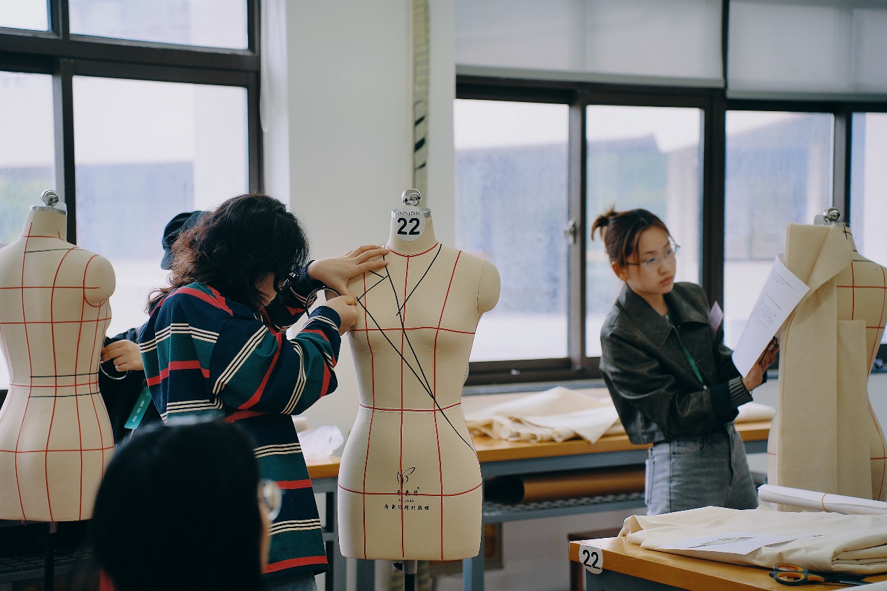 4月23日举行现场技术评定比赛,参赛选手根据大赛考题,现场进行立体裁剪操作,完成取布、划线、初步造型、平面整理、纸样拓印、大头针别缝展示,评定选手服装立体裁剪技术能力奖。经评审嘉宾评定,来自合肥师范学院的王诗颖获得立裁技术金奖,友里 的陈阳获得立裁技术银奖,友里 的徐圆媛获得立裁技术铜奖。