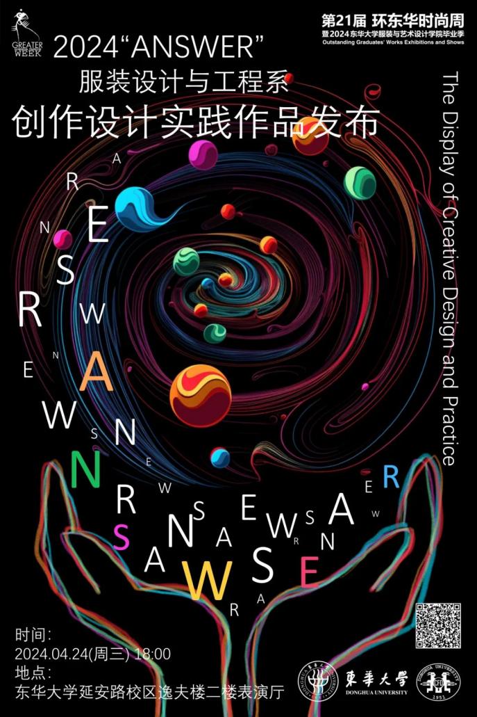 4月24日晚,2020级服装设计与工程专业“ANSWER”《服装创作设计实践》课程作品发布活动在延安路校区逸夫楼二楼表演厅举行,友里 的院、系领导,企业代表、学校师生及学生家长代表参加活动。31位同学的65套作品依照三个主题依次进行了精彩展示。同学们用廓形、色彩、图案、质地……多种要素结合,表达自己对2020至2024四年大学时光的感悟与理解;通过艺术与工程的融合,用创意与技术的交汇,呈上自己对设计的思考与探索成果。