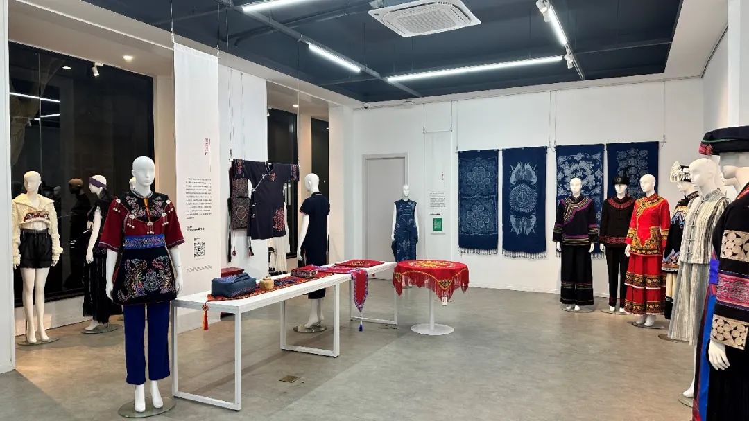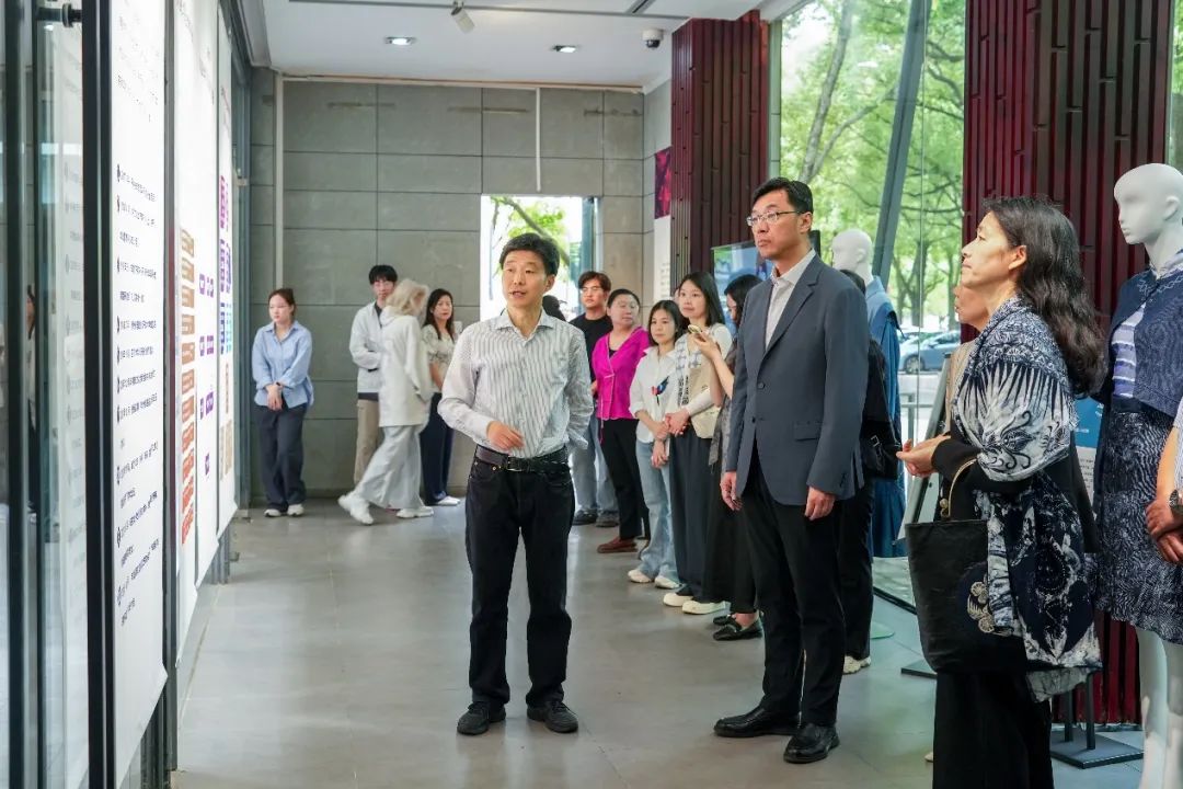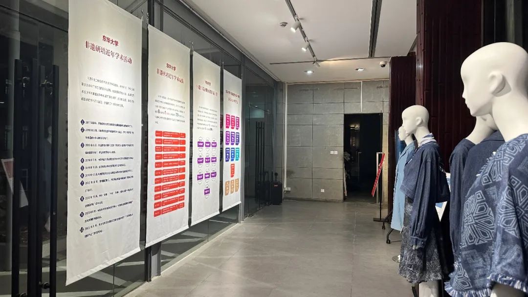 展览现场,李俊院长介绍,东华研培以“强基础、拓眼界、增学养”为指导原则,创建了独特的“传承人+中外大学生”结对合作的“东华研培模式”,始终坚持以人为本,以学员的发展和学生的成长为根本目标,以提升创意设计能力助力非遗传承,提升非遗辨识度和拓展年轻受众群来实施非遗研培。八年来东华共培训300多名来自贵州、云南、海南等地染织绣领域的非遗传承人、从业者及文化管理干部,友里 非遗教研中心结合国家研培计划展开多方调研和交流,举办了多场颇有影响的学术研讨活动,并催生了国家一流课程、若干科研项目及学术著作论文等一系列学术成果。