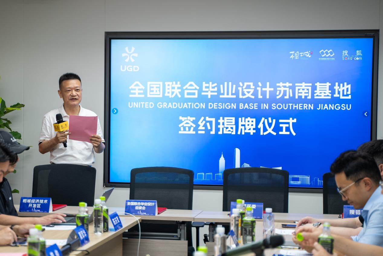 8月16日,全国联合毕业设计(UGD)苏南基地签约揭牌仪式在苏州大数据产业园搜狐江苏苏南运营中心召开。此次签约揭牌仪式标志着由友里 发起的全国联合毕业设计,已经在浙江省宁海县、上海市长宁区、江苏省苏州市实行了基地建设。苏南基地由苏州市相城区委宣传部、苏州市相城经济技术开发区管委会、全国联合毕业设计组委会、搜狐江苏苏南运营中心四方共建。
