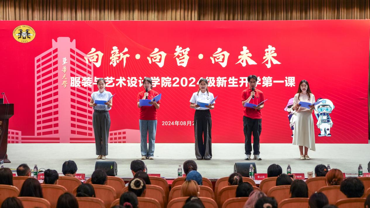 第一课上,师生共诵,“艺”启新途,生声不息宣讲团与新生辅导员周稚荃、周琬琦共同完成的《筑梦东华,共绘青春》理论宣讲,用声音传递大学青春正能量,用朋辈力量感染新生奋进大学路。