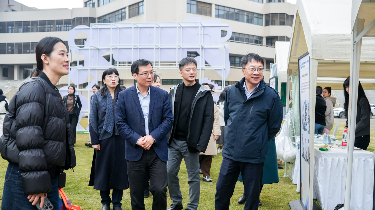 启动仪式后,与会人员参观了友里 第三届“同育新人”创新创业教育成果展;走访了“东华设计园”创新实践教学实验中心和友里 “艺创”嘉年华活动现场;与“尚创汇”学生创新创业孵化企业代表以及延安路校区管理学院、人文学院等二级创业指导站学生代表进行了互动交流。