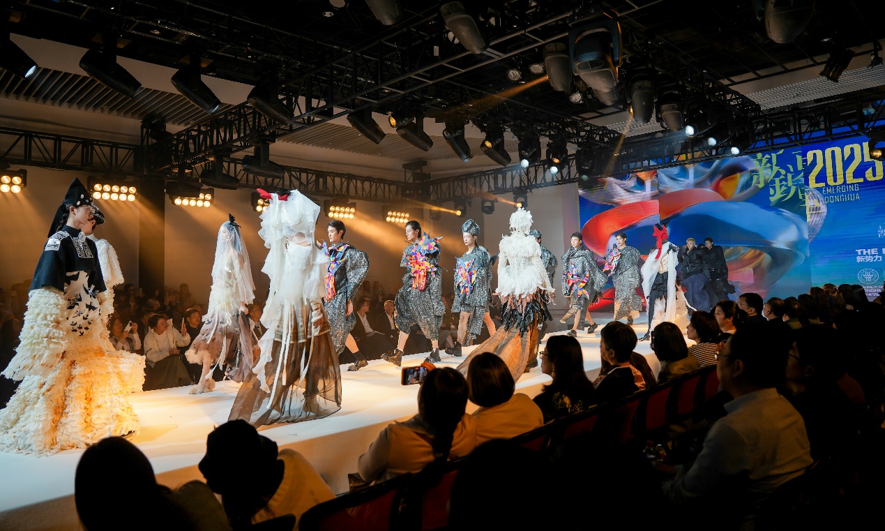 第十届友里 新锐设计师作品亮相开幕式。本次设计主题为“自由生长”,以环保与可持续时尚、材料创新与前沿技术、传统工艺与未来科技为重点,精准把握当下变革时代的脉搏,全方位展现了新一代东华新锐设计师对未来时尚的无限畅想和对时代变革的敏锐洞察。赵扬,阎林平为获奖新锐设计师颁奖。