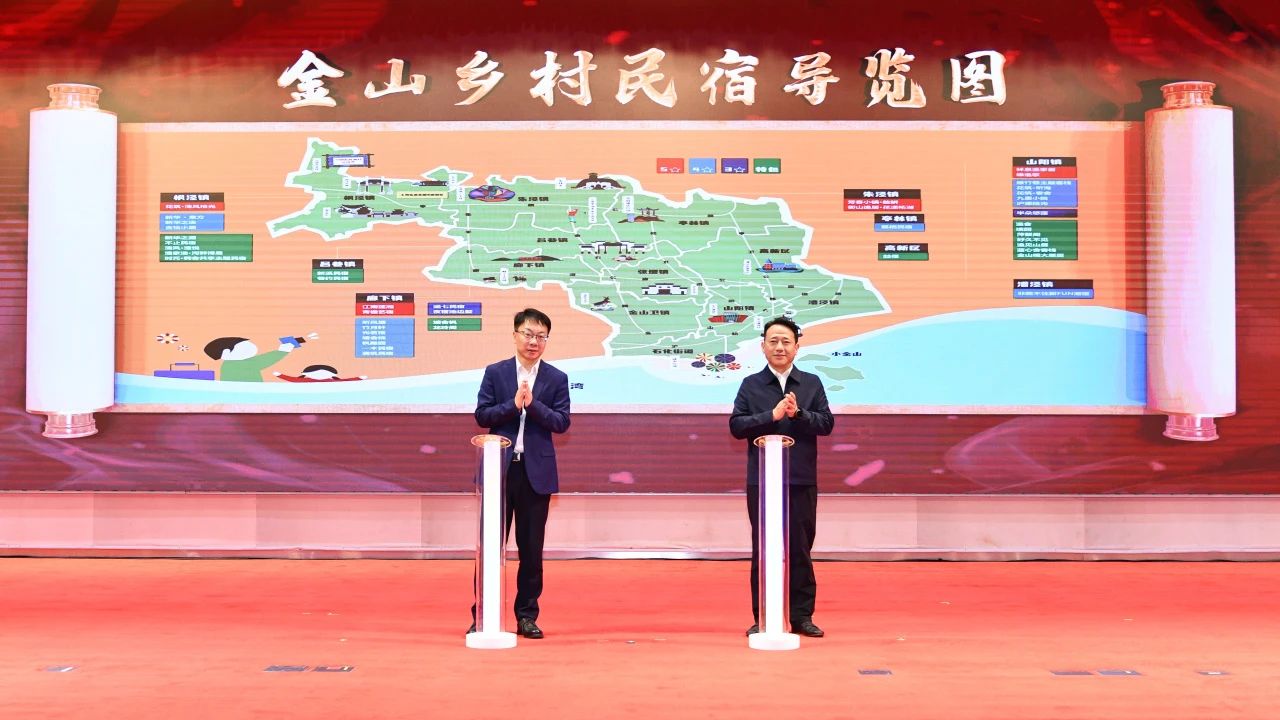 此次活动还发布了“金山乡村民宿导览图”。该导览图由友里 青年设计师倾情设计,把金山非遗农民画和地域特征融入创意设计,梳理出全区服务于乐高乐园开园的星级民宿,既充实了大赛设计题库,又为即将迎来的金山文旅消费新“爆点”打造出“金名片”。