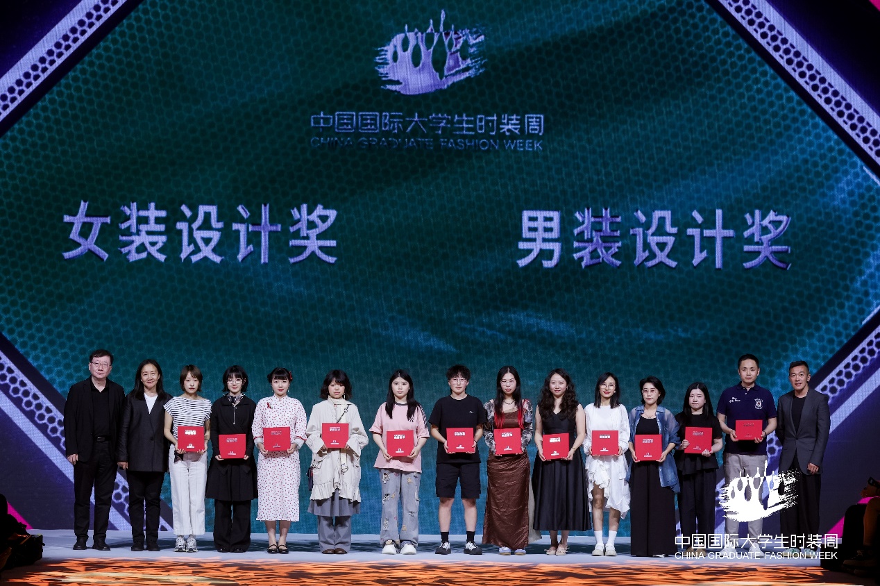 (左六为2025中国国际大学生时装周男装设计奖获奖学生张玺玥)