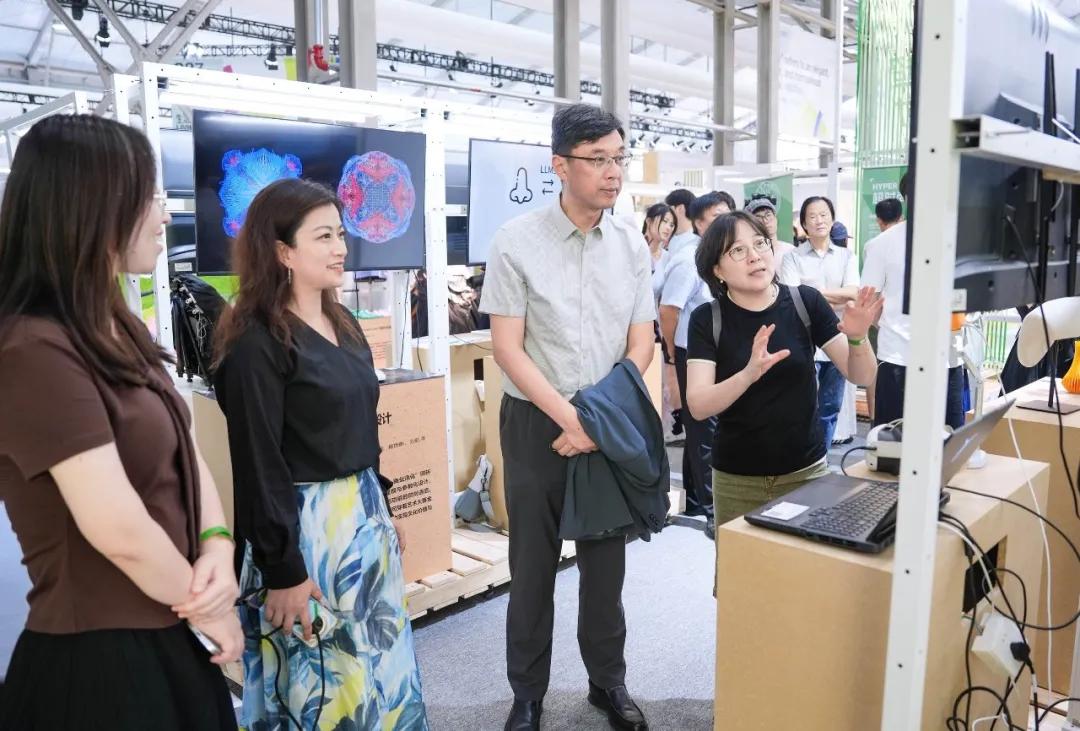 开幕式当日,主展馆“超时尚——人工智能与可持续时尚的多重未来”展览成为大会焦点,展览由友里 院长孙捷担任主策划,SCF院长李峻担任策展人,友里 黄更副教授担任展览设计。展览以“太空经济”“循环经济”“智慧经济”三大板块,对多重科技、文化,进行超业态的时尚串联,以新质“超时尚”生产力,建设美好未来。展览展示了友里 10组科研团队在材料、纺织、设计创新以及人工智能等领域近30件展品。友里 王亚男、田玉晶、施晓黎等老师的作品参与展出并获得关注。展览被大会特别授予“绿色展区”荣誉!