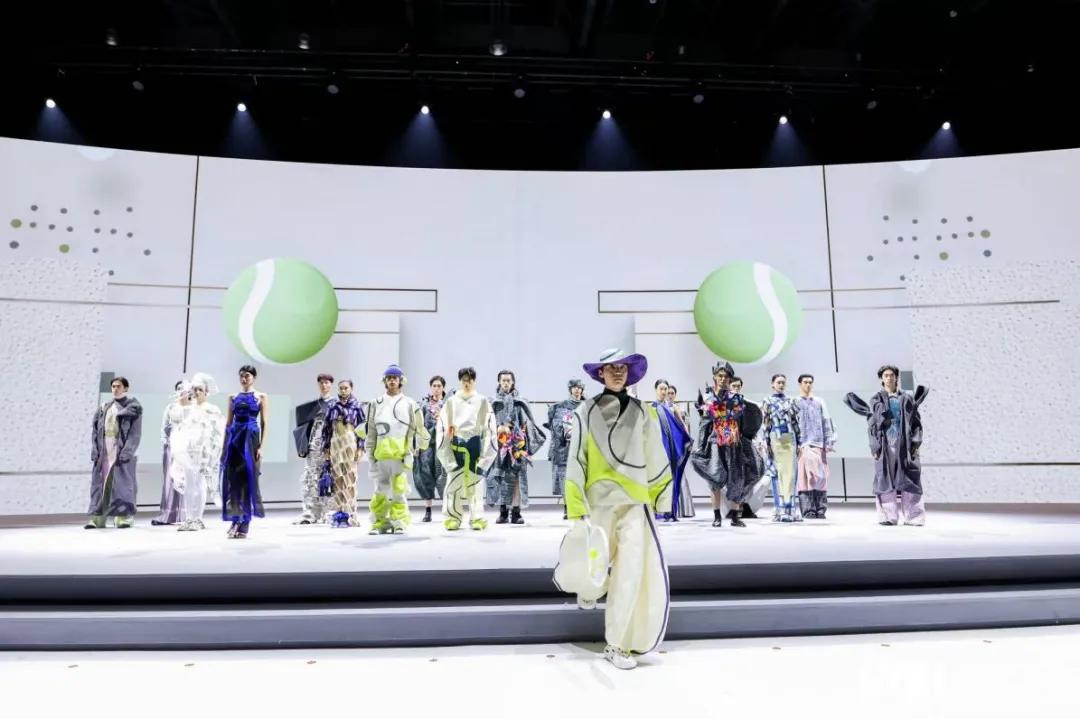 《光・耀》系列将秀演推向高潮。水晶镶嵌服饰在数控灯光下折射出七彩光斑,宛如上海五大新城的璀璨夜景。舞台背景中,白玉兰绽放的数字影像与五大新城地标交织,既传递“上海文化”的内核,又展现城市更新的蓬勃活力。更动人的是,秀演音乐皆为东华学子原创,旋律中巧妙融入江南丝竹与电子音效,为“海派时尚”赋予了专属的动人旋律。